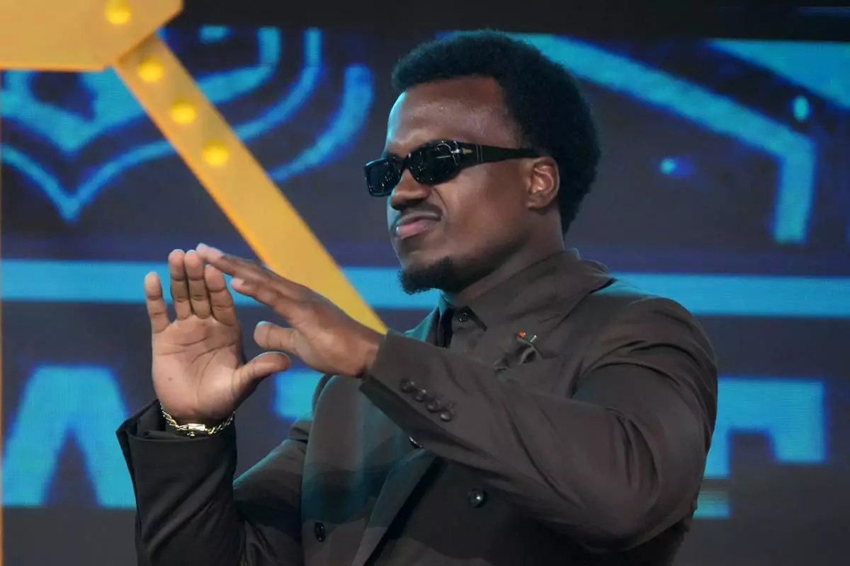 Miami defensive lineman Rueben Bain Jr. walks on stage before the first round of the NFL football draft, Thursday, April 23, 2026, in Pittsburgh. (AP Photo/Gene J. Puskar)