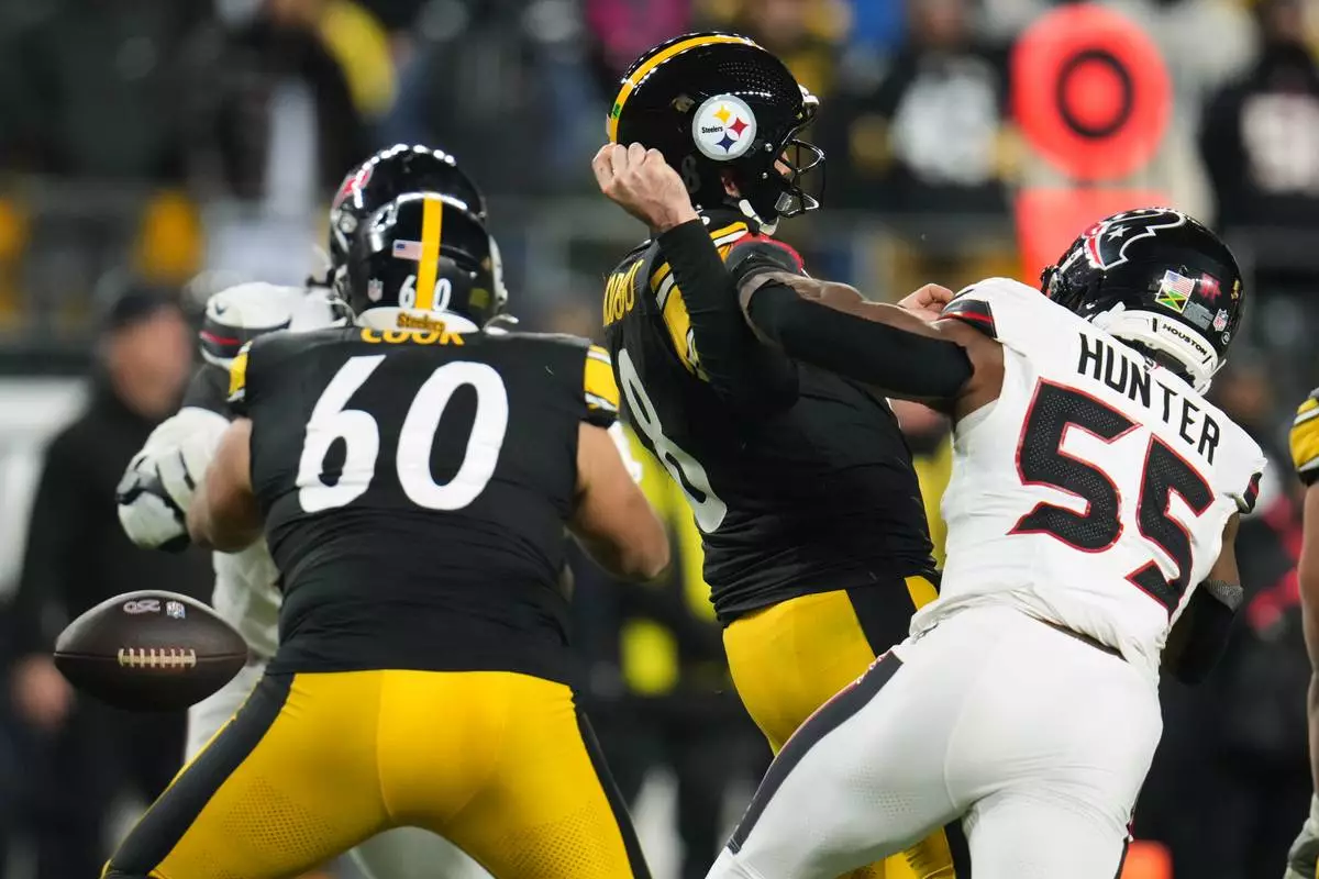 Houston sacked Aaron Rodgers four times and hit him 12 other times on Monday night while forcing him to fumble twice. They scored two defensive touchdowns against the Steelers, with one coming on Anderson’s strip sack of Rodgers that Rankins scooped up and returned 33 yards for the score. It was the fourth touchdown this season for Houston’s defensive line, another example of just how good this group has been.