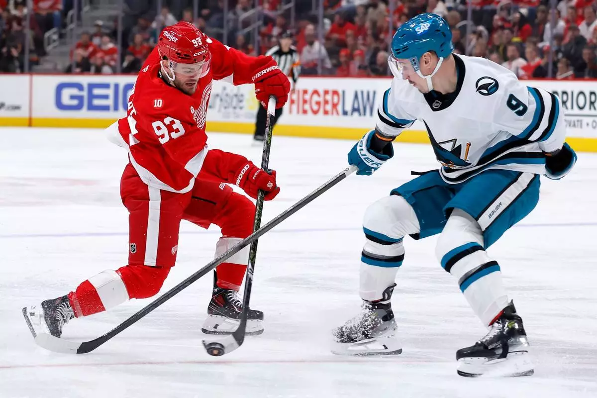 DETROIT (AP) — Dylan Larkin scored the go-ahead goal early in the third period and the surging Detroit Red Wings beat the San Jose Sharks 4-2 on Friday night.