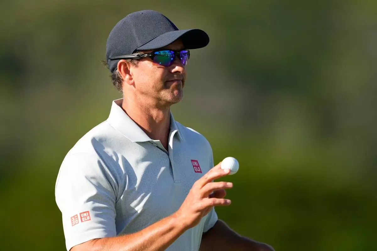 Adam Scott, of Australia, reacts on the 13th green during the second round of the Sony Open golf event at the Waialae Country Club in Honolulu, Friday, Jan. 16, 2026. (AP Photo/Matt York)