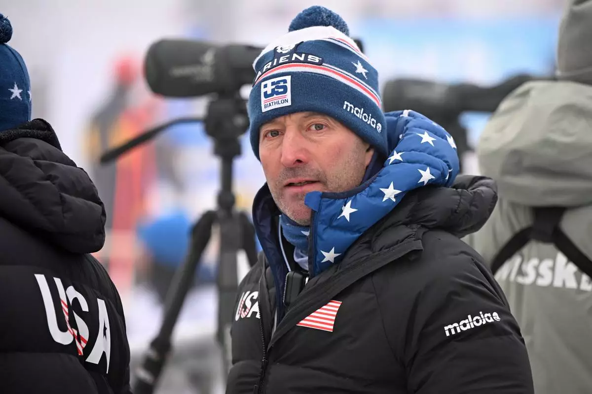 FILE - U.S. Coach Armin Auchentaller looks on at the shooting range of the World Cup of Biathlon in Oberhof, Germany, Thursday Jan. 8, 2026. (Jennifer Brückner/dpa via AP, File)