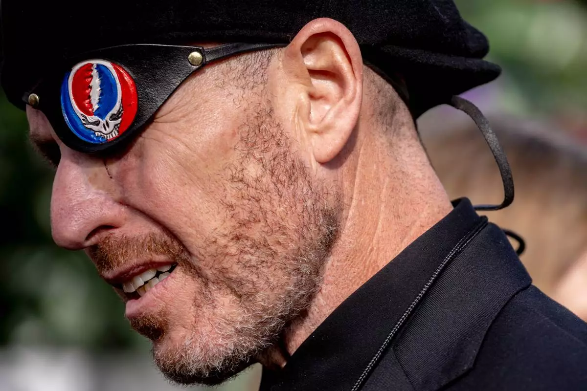 Jonathan Levine, a music executive who worked extensively with the Grateful Dead, wears an eye patch during a public memorial for the band's co-founder Bob Weir at Civic Center Plaza in San Francisco, Saturday, Jan. 17, 2026. (Stephen Lam/San Francisco Chronicle via AP)