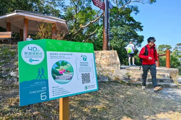 Treasure hunt: To join the "Unlocking Hong Kong Trail" hiking challenge, hikers scan a QR code at designated checkpoints and answer a fun fact question to unlock an e-badge. Image source: www.news.gov.hk