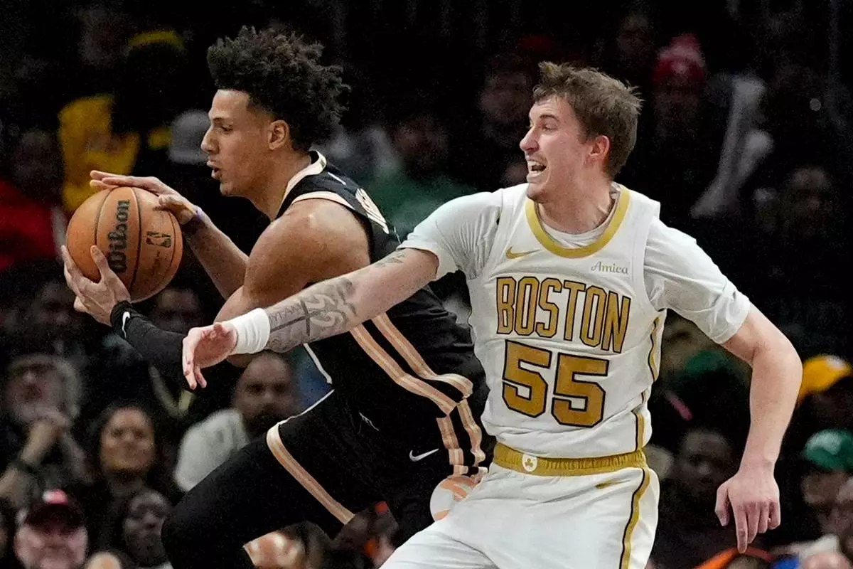 Boston barely missed at all in the second, knocking down 19 of 25 shots — including 11 of 15 beyond the 3-point arc. Hauser was perfect on his six attempts from long range in the period, and Brown dazzled inside and out. On a strong drive to the hoop in the final seconds of the half, he flexed his muscles for the State Farm Arena crowd, as if to say the Hawks had no chance of stopping him.
