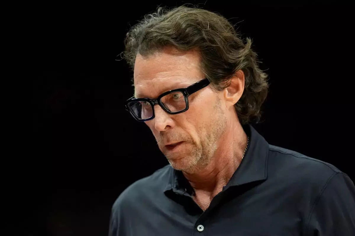 Atlanta Hawks head coach Quin Snyder walks the line during the first half of an NBA basketball game against the Boston Celtics, Saturday, Jan. 17, 2026, in Atlanta. (AP Photo/Mike Stewart)