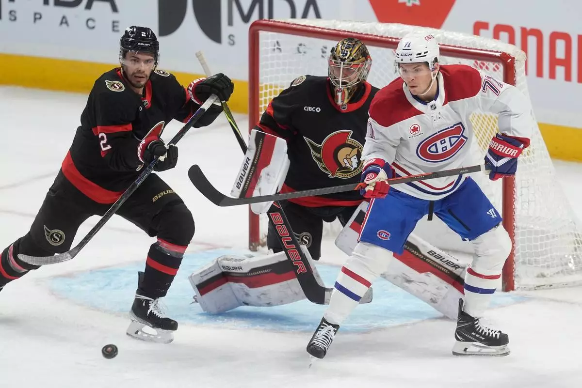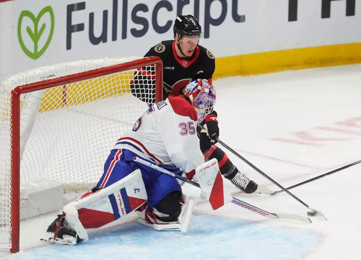 OTTAWA, Ontario (AP) — Montreal scored three straight goals, including Cole Caufield’s second of the game 33 seconds into overtime, to give the Canadiens a 6-5 come-from-behind win over the Ottawa Senators on Saturday.
