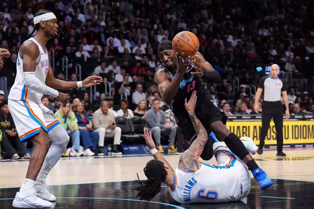 MIAMI (AP) — Andrew Wiggins' 3-pointer with 31 seconds left put Miami up for good, Bam Adebayo scored 30 points with a career-best six 3s and the Heat defeated the NBA champion Oklahoma City Thunder 122-120 on Saturday night.
