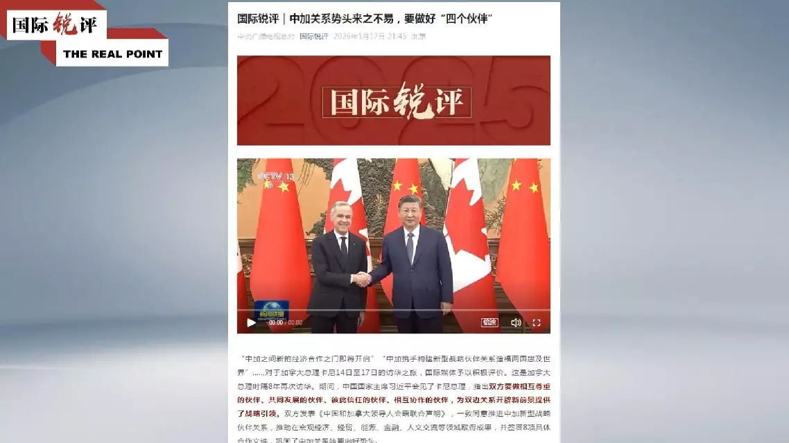 Analysts note that Canada's current diplomacy toward China is being independent, rational and pragmatic. The outcomes of Prime Minister Carney's China visit and the momentum of improvement in China-Canada relations will bring more positive energy to a world fraught with changes and turbulence.