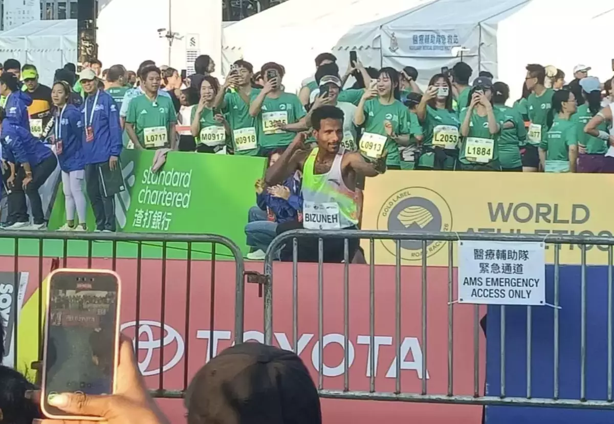 Bizuneh, the men's full marathon champion, won in 2 hours, 9 minutes, and 39 seconds. He said that although the full marathon race was not easy, he was happy to participate in this year's event in Hong Kong. Enjoying the race atmosphere here, he hopes to have the opportunity to compete in Hong Kong again next year.