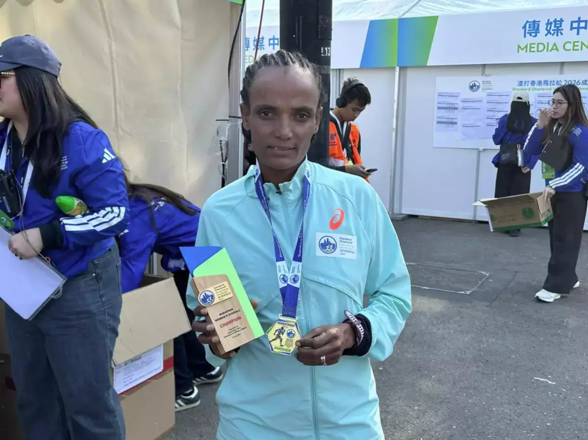 Habtegebrel, the women's full marathon champion, won in 2 hours, 27 minutes, and 3 seconds. She said that it was her first time running the marathon in China and felt quite satisfied with the organizing committee and the race atmosphere. She described the spectators as enthusiastic and the Hong Kong environment as beautiful.