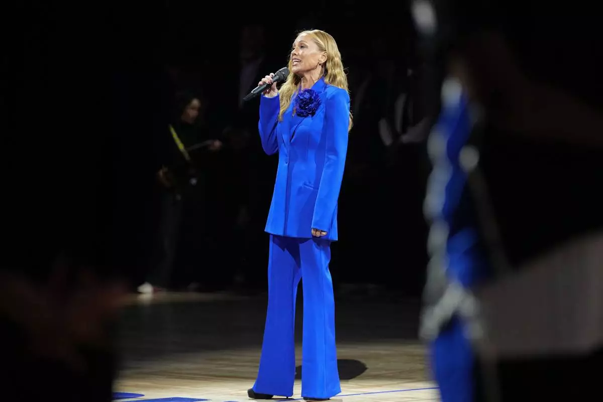 Vanessa Williams sings before an NBA basketball between the Memphis Grizzlies and the Orlando Magic Sunday, Jan. 18, 2026, in London. (AP Photo/Kin Cheung)
