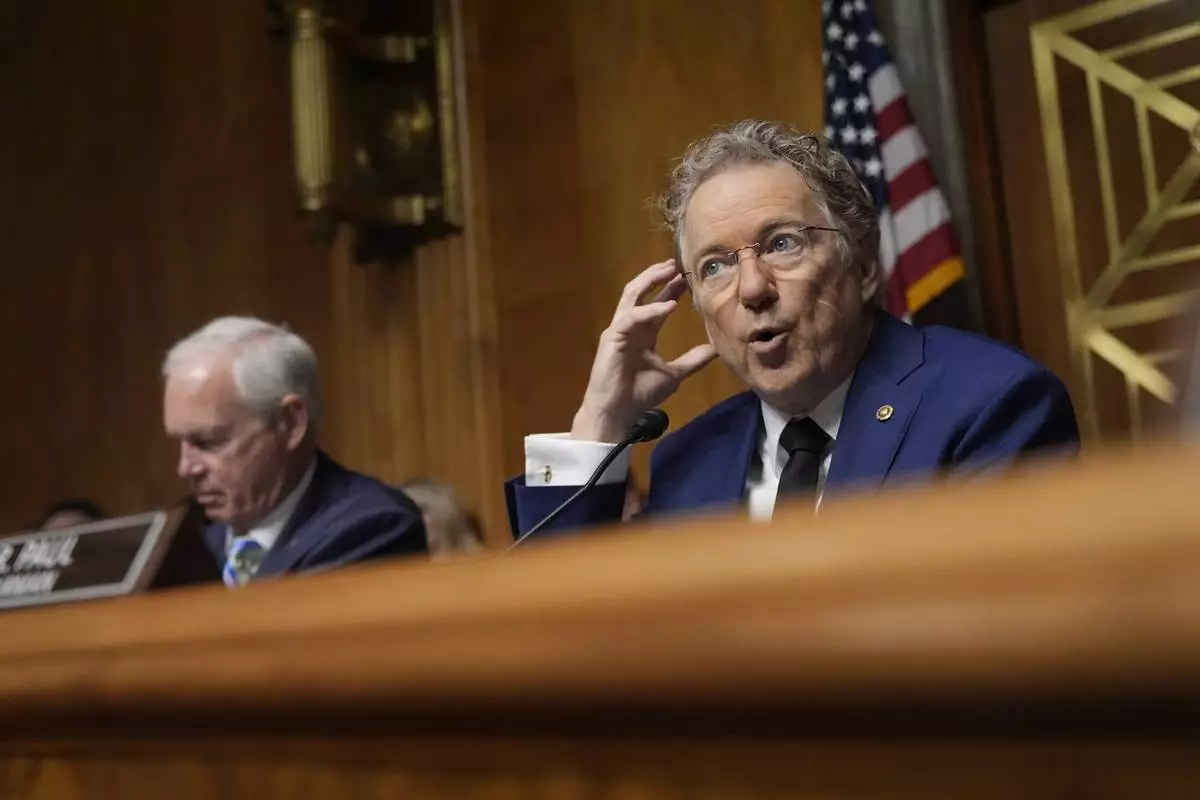 Committee Chairman Sen. Rand Paul, R-Ky, speaks before Sen. Markwayne Mullin, R-Okla., President Donald Trump's pick for Homeland Security secretary, testifies before the Senate Committee on Homeland Security and Governmental Affairs hearing, Wednesday, March 18, 2026 on Capitol Hill in Washington. (AP Photo/Manuel Balce Ceneta)