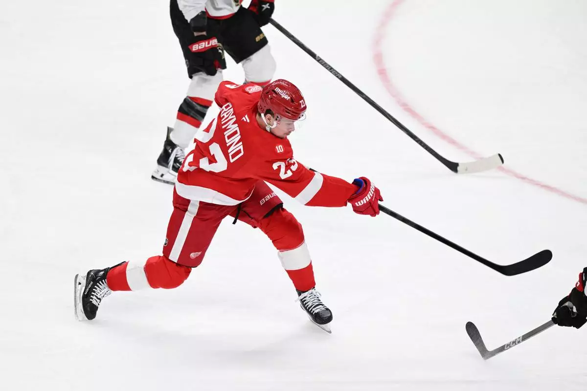 Sandin-Pellikka's power-play goal came on a shot from the point at 7:16 of the period to get the Red Wings on the scoreboard. Raymond's shot from the high slot over Reimer's glove at 6:06 of the second period tied it at 2-all.