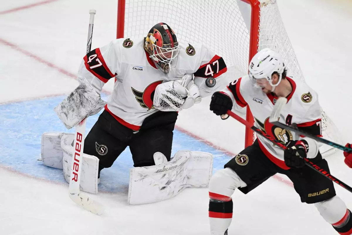 Drake Batherson had a goal and an assist for Ottawa. Dylan Cozens and Shane Pinto also scored, and James Reimer made 30 saves.