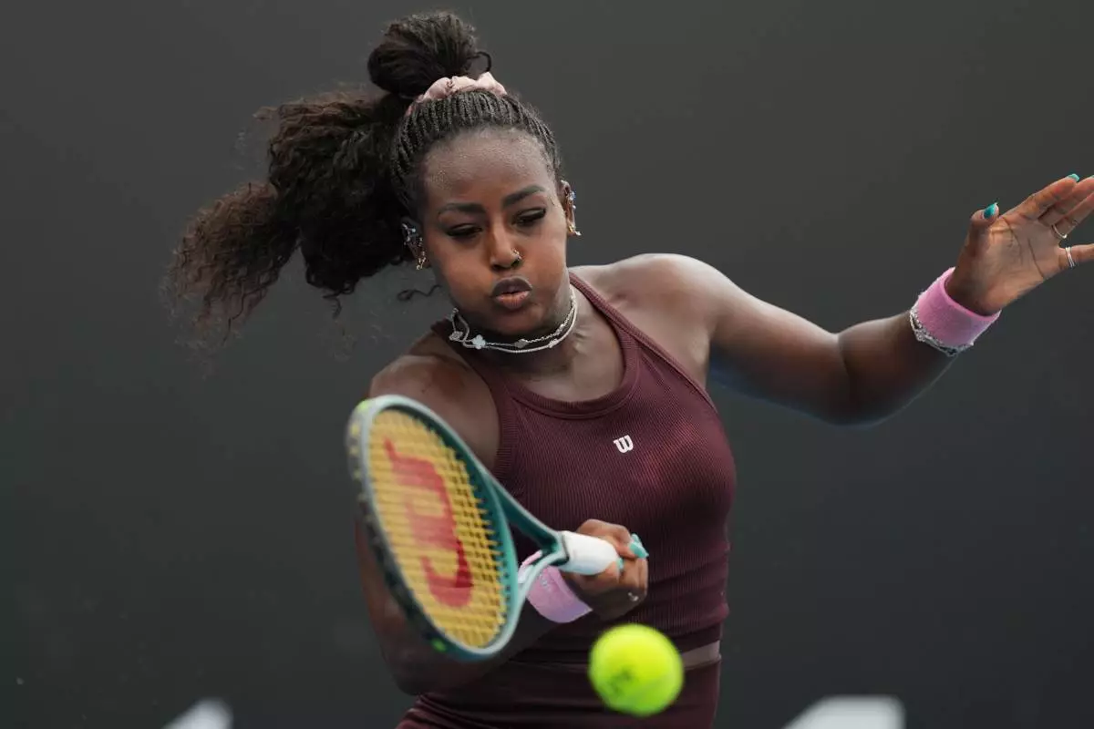 Alycia Parks of the U.S. plays a forehand return to Alexandra Eala of the Philippines during their first round match at the Australian Open tennis championship in Melbourne, Australia, Monday, Jan. 19, 2026. (AP Photo/Dar Yasin)