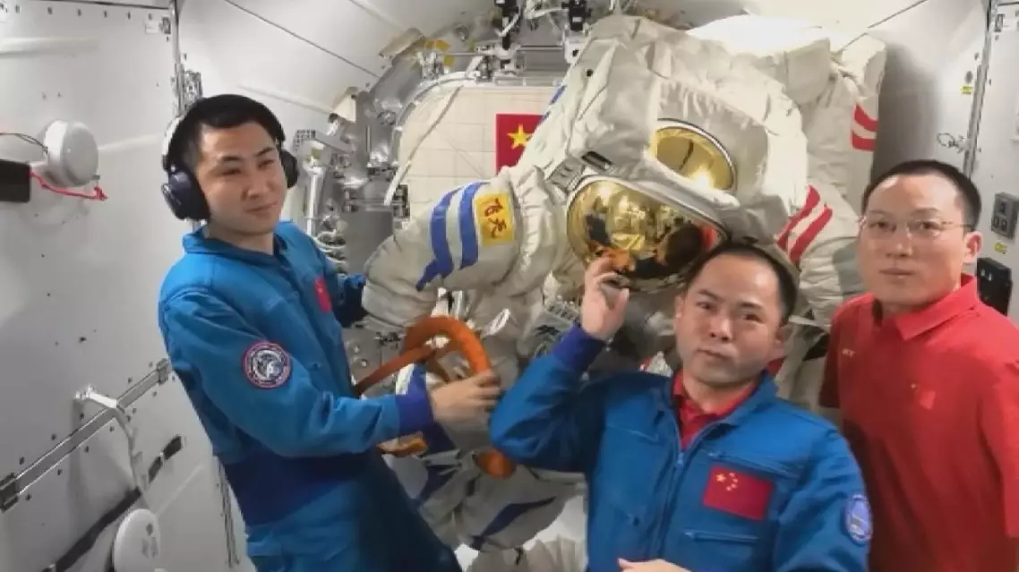 Prior to dissembling and packing the spacesuit for its return, astronauts currently aboard China's Tiangong Space Station gave the well-worn "Spacesuit B" a triumphant send-off.