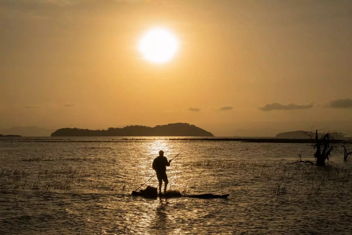 A fisherman sails on lake Dembel, in Batu, Ethiopia, Monday, Jan. 19, 2026. (AP Photo/Amanuel Sileshi)
