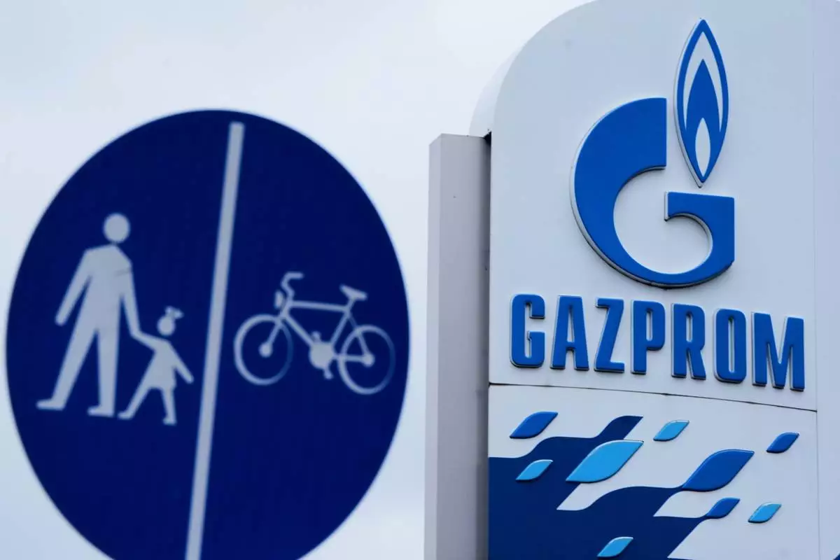The Gazprom company logo at a petrol station and a traffic sign are seen in Belgrade, Serbia, Sunday, Nov. 23, 2025. (AP Photo/Darko Vojinovic)