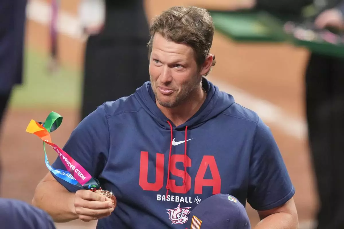 Former MLB player Clayton Kershaw carries a silver medal after the championship game of the World Baseball Classic against Venezuela, Tuesday, March 17, 2026, in Miami. (AP Photo/Lynne Sladky)