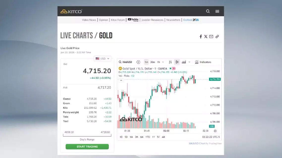 London spot gold prices briefly rose to over 4,717 U.S. dollars per ounce, while gold futures on the New York Mercantile Exchange at one point broke through the level of 4,723 U.S. dollars per ounce.