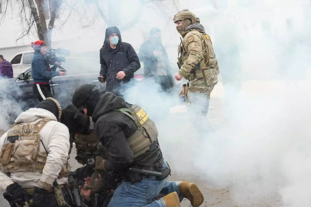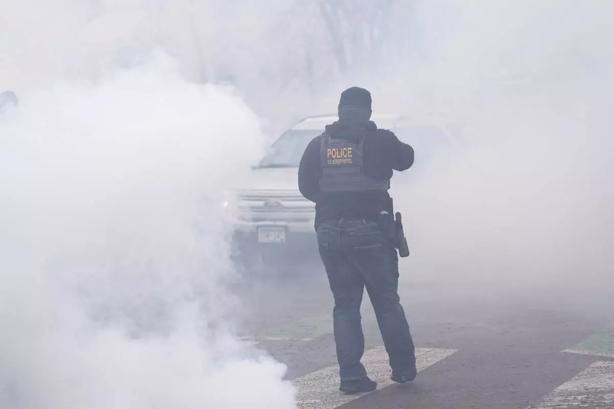 Tear gas is deployed as Federal agents make arrests on Wednesday, Jan. 21, 2026, in Minneapolis. (AP Photo/Angelina Katsanis)