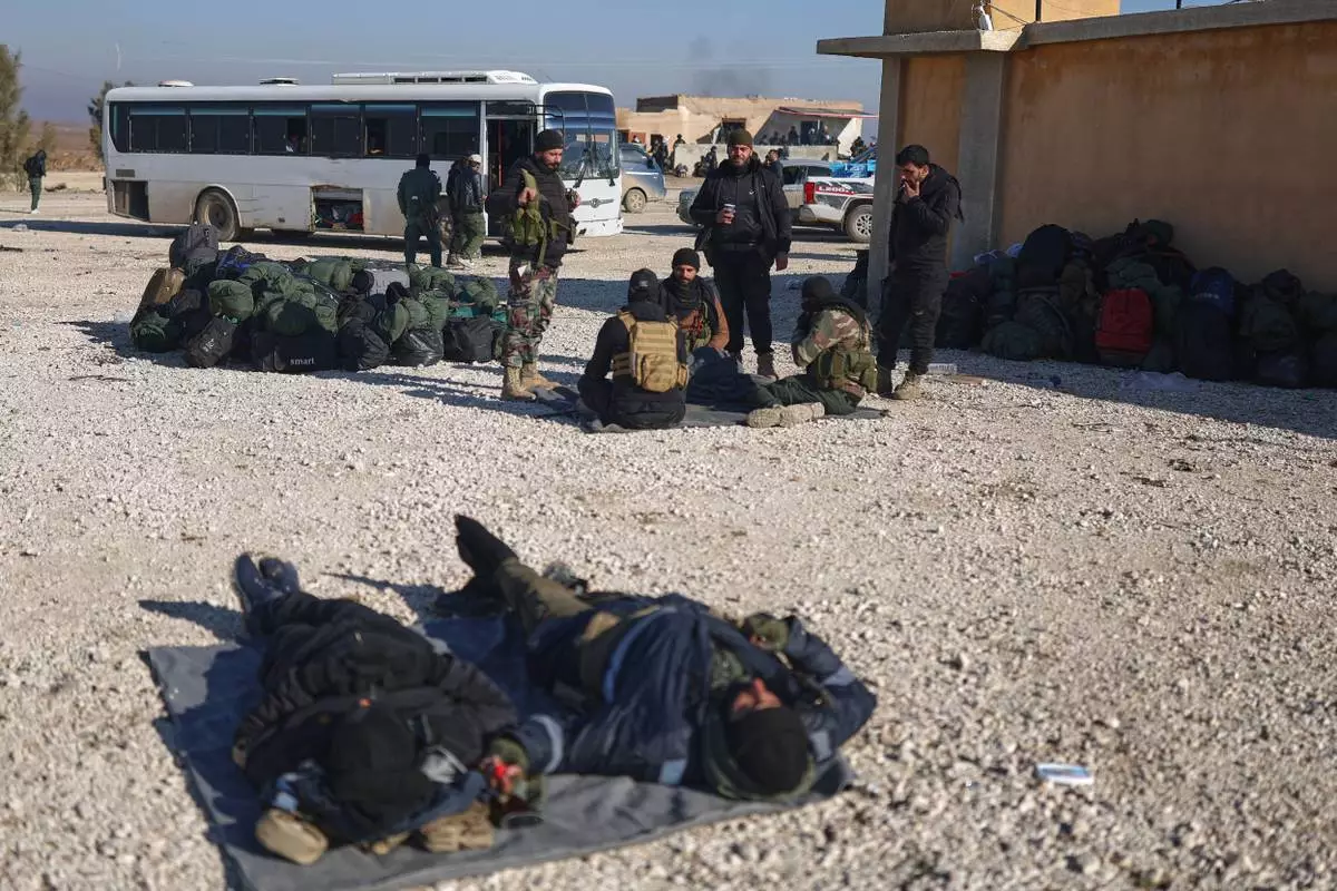 Syrian government forces with their luggage wait to enter the al-Hol camp in northeastern Syria's Hasakeh province, Syria, Wednesday, Jan. 21, 2026, after the withdrawal of the Syrian Democratic Forces (SDF). (AP Photo/Ghaith Alsayed)