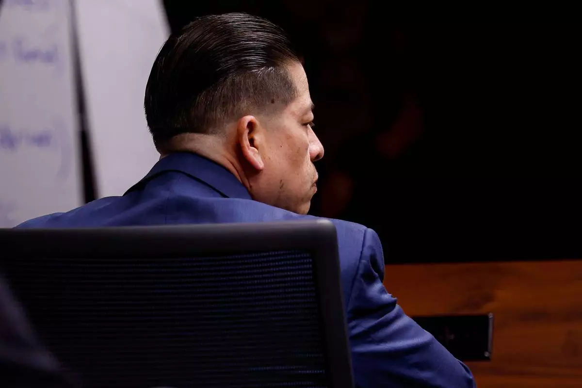 Javier Cazares listens to testimony during the 10th day of the trial of former Uvalde school district police officer Adrian Gonzales at the Nueces County Courthouse in Corpus Christi, Texas, Tuesday, Jan. 20, 2026. Cazares is the father of Robb Elementary shooting victim Jackie Cazares, one of the 19 children killed by an 18-year-old gunman. (Sam Owens/The San Antonio Express-News via AP, Pool)