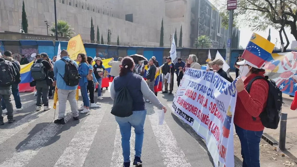 Demonstrators gathered outside the U.S. Embassy in Mexico City on Monday, calling for respect for sovereignty in Latin America as the impact of U.S. military actions in Venezuela in early January continues to reverberate across the region.