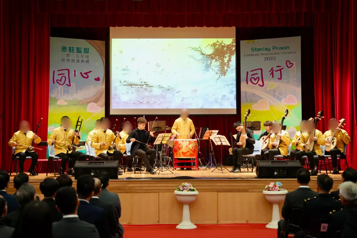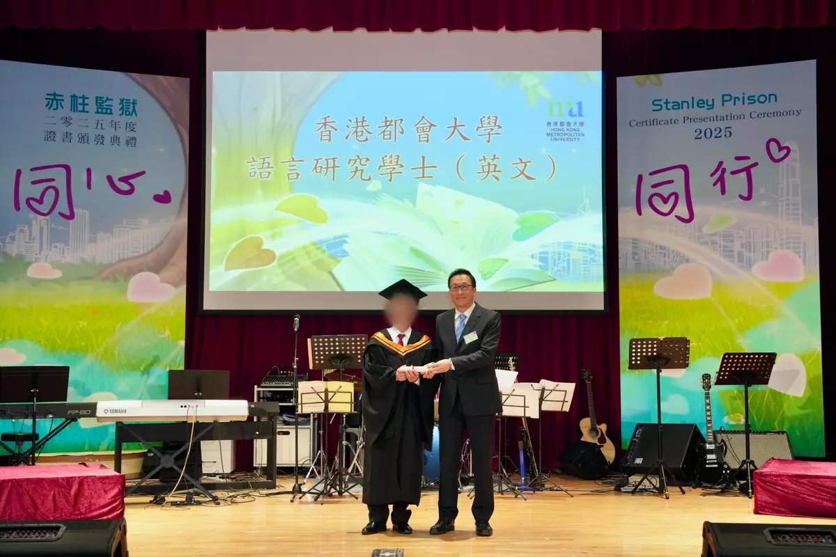 In 2025, a total of 195 PICs at Stanley Prison passed 277 papers with 97 distinctions and credits in various courses and public examinations organised by the Hong Kong Metropolitan University (HKMU) and Caritas Institute of Community Education. The subjects covered language and literature, English for business, business finance and accounting. The 62 PICs who were awarded certificates today passed 99 papers with 72 distinctions and credits. Among them, one PIC was awarded a Bachelor's Degree in Language Studies (English), two were awarded Bachelor's Degrees in General Studies, and one was awarded an Associate Degree in General Studies by the HKMU.