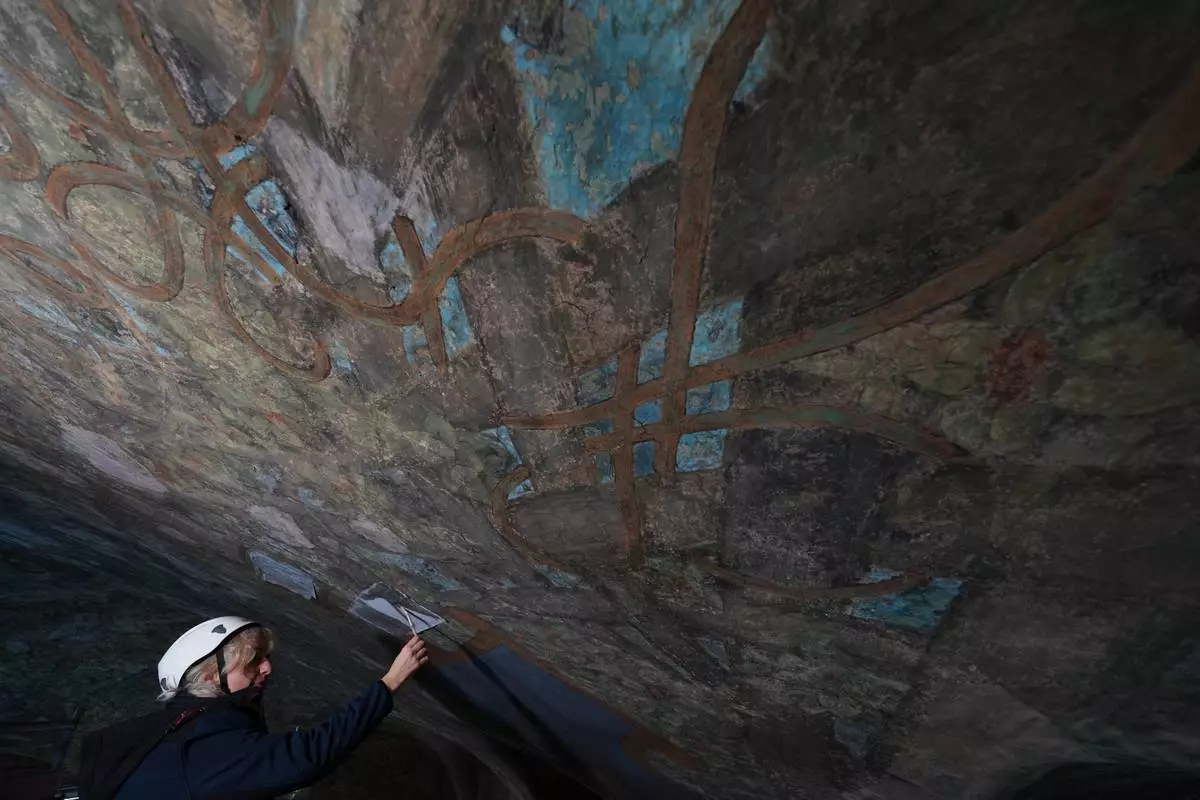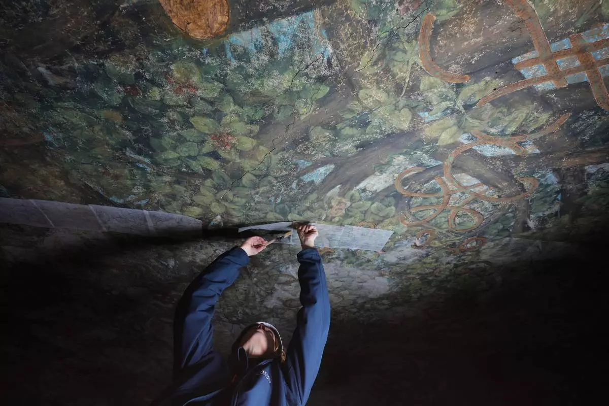 Restorers are using Japanese rice paper with demineralized water to remove salts that have seeped into the walls, gradually cleaning the surface of the painting.