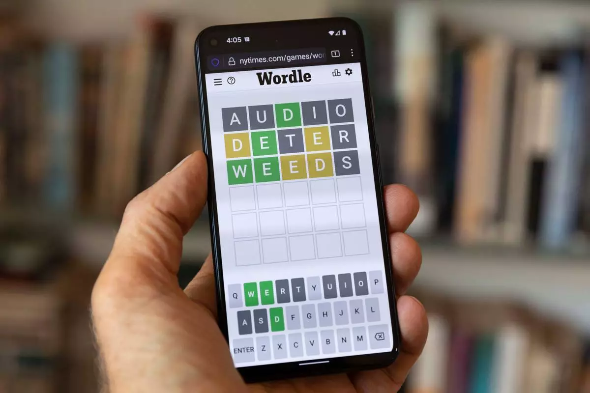 FILE - A Wordle game is seen on a mobile phone, July 15, 2022, in Boston. (AP Photo/Michael Dwyer, File)