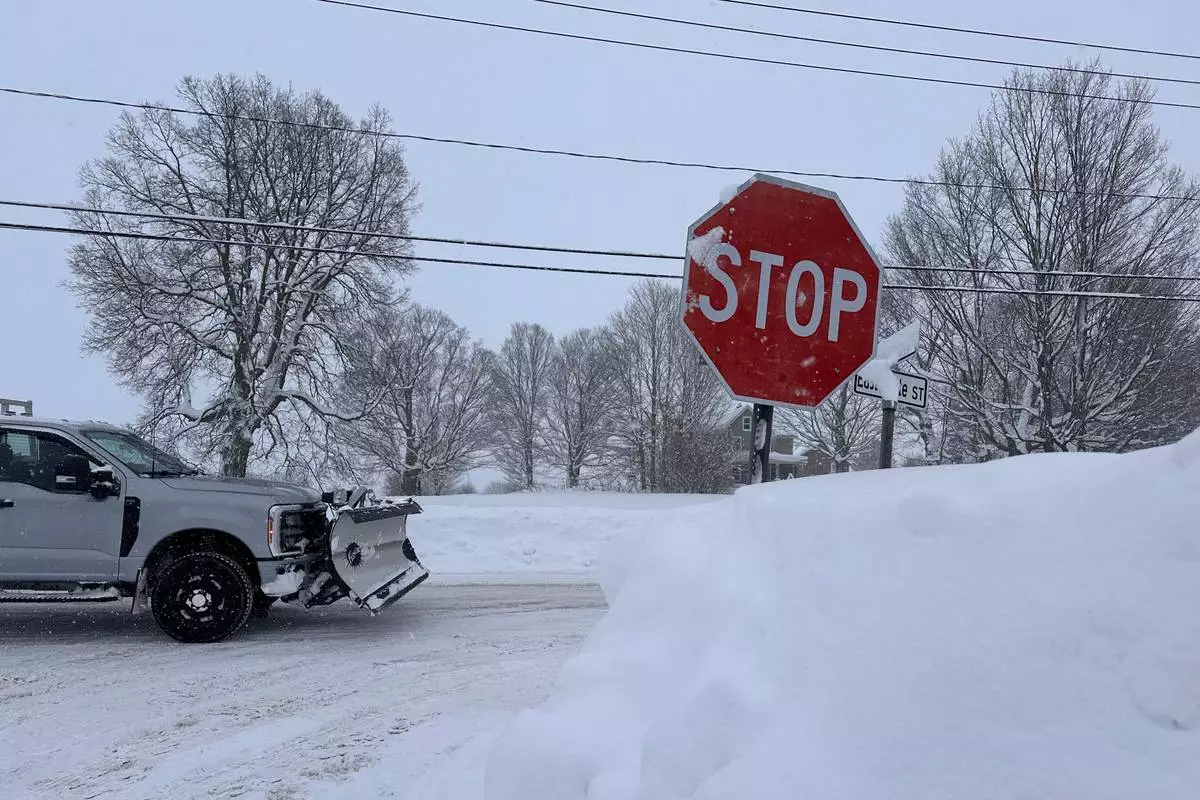 A driver navigates fresh snowfall in Lowville, New York, on Friday, Jan. 23, 2026. (AP Photo/Cara Anna)