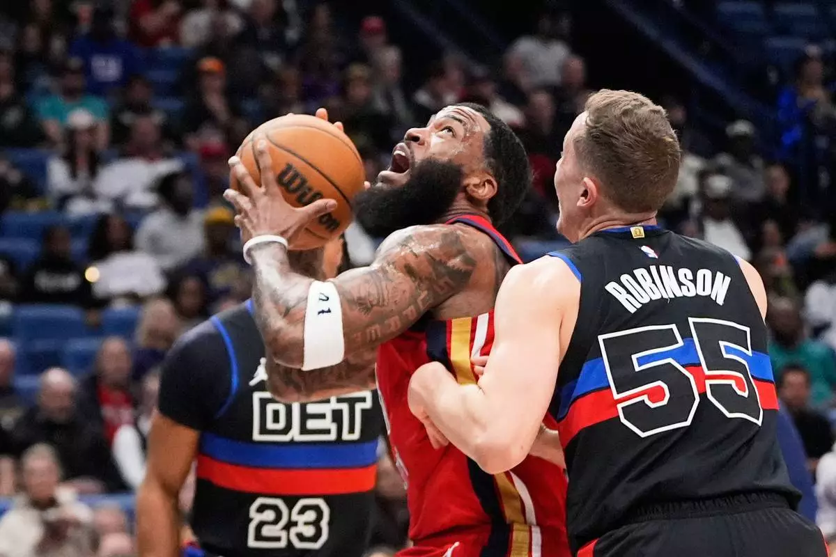 NEW ORLEANS (AP) — Jalen Duran scored 20 points and grabbed 15 rebounds, Daniss Jenkins added 17 points and the Detroit Pistons never trailed while cruising to their fourth straight victory, 112-104 over the New Orleans Pelicans on Wednesday night.