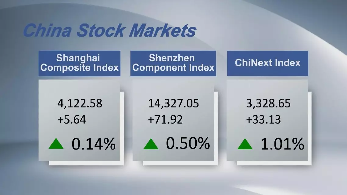 Chinese stocks closed higher on Thursday, with the benchmark Shanghai Composite Index up 0.14 percent to 4,122.58 points.