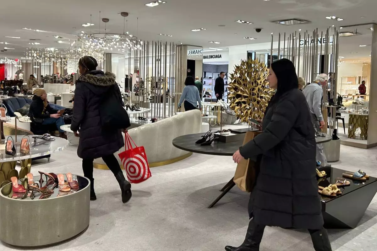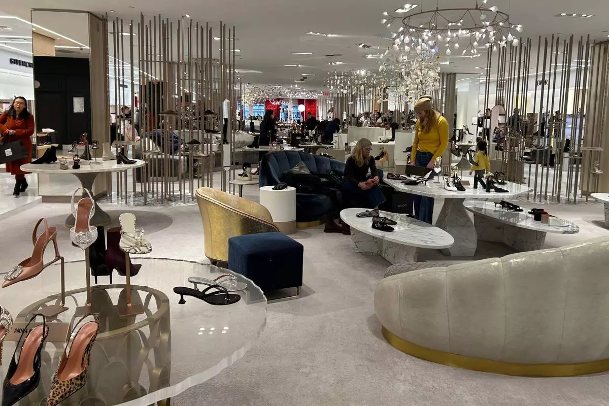 Shoppers walk through Saks Fifth Avenue on Friday, Jan. 16, 2026 in New York. (AP Photo/Anne D'Innocenzio)