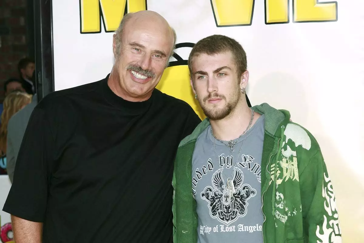 FILE - Dr. Phil McGraw, left, and his son, Jordan McGraw, arrive at the premiere of 'The Simpsons Movie' in Los Angeles, July 24, 2007. (AP Photo/Matt Sayles, File)
