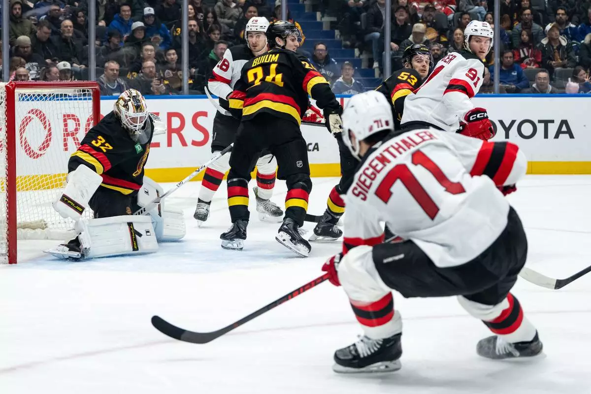 VANCOUVER, British Columbia (AP) — Cody Glass had two goals and an assist, Lenni Hameenaho scored his first NHL goal and the New Jersey Devils beat the Vancouver Canucks 5-4 on Friday night to extend their Western Canada winning streak to three.