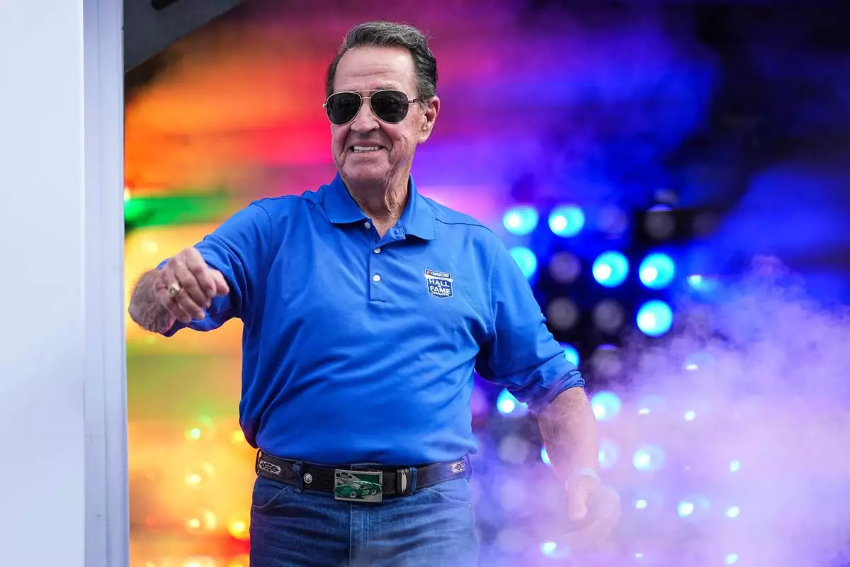 FILE - Former driver Harry Gant is introduced to fans as an inductee into the Hall of Fame class of 2026 prior to a NASCAR Cup Series auto race at Charlotte Motor Speedway, Sunday, Oct. 5, 2025, in Concord, N.C. (AP Photo/Matt Kelley,File)