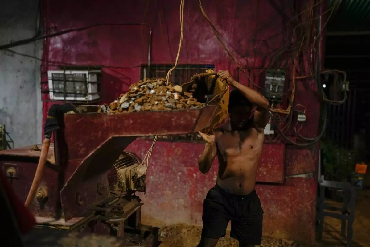 Marcovich Gonzalez loads rocks and soil into a machine that crushes it at a mill that processes material from nearby pits to extract gold in El Callao, Venezuela, Tuesday, Jan. 22, 2026. (AP Photo/Matias Delacroix)