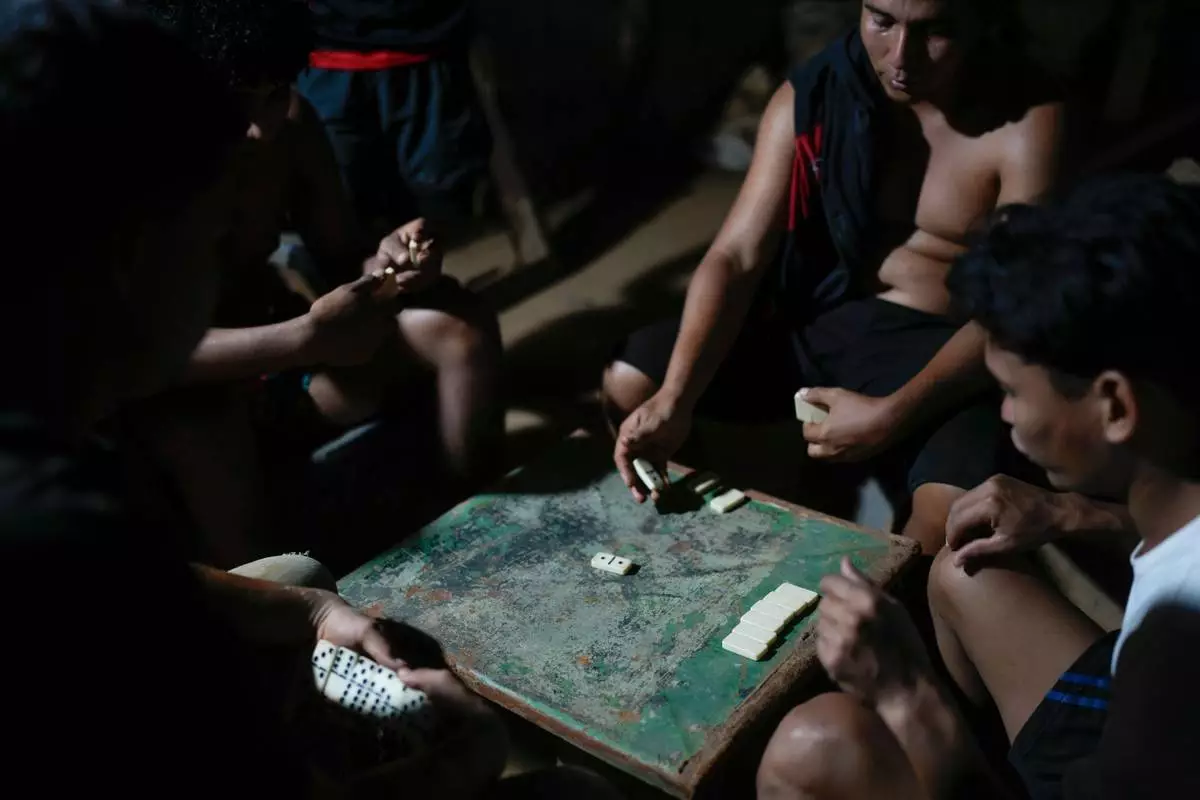 Miners play dominos after working in the gold mining town of El Callao, Venezuela, Thursday, Jan. 22, 2026. (AP Photo/Matias Delacroix)