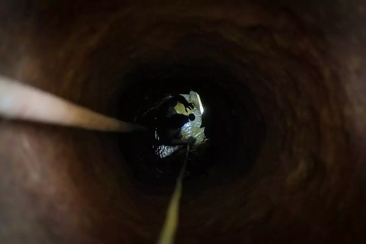 A miner descends into a gold mine pit in El Callao, Venezuela, Tuesday, Jan. 22, 2026. (AP Photo/Matias Delacroix)