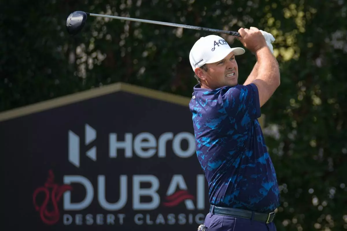 Patrick Reed of the United States tees off at 2nd hole during the third round of the Dubai Desert Classic in United Arab Emirates, Saturday, Jan. 24, 2026. (AP Photo/Altaf Qadri)