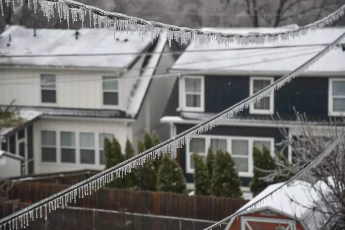 Icicles form on power lines during a winter storm in Nashville, Tenn,, Sunday, Jan,. 25, 2026. (AP Photo/Kristin Hall)