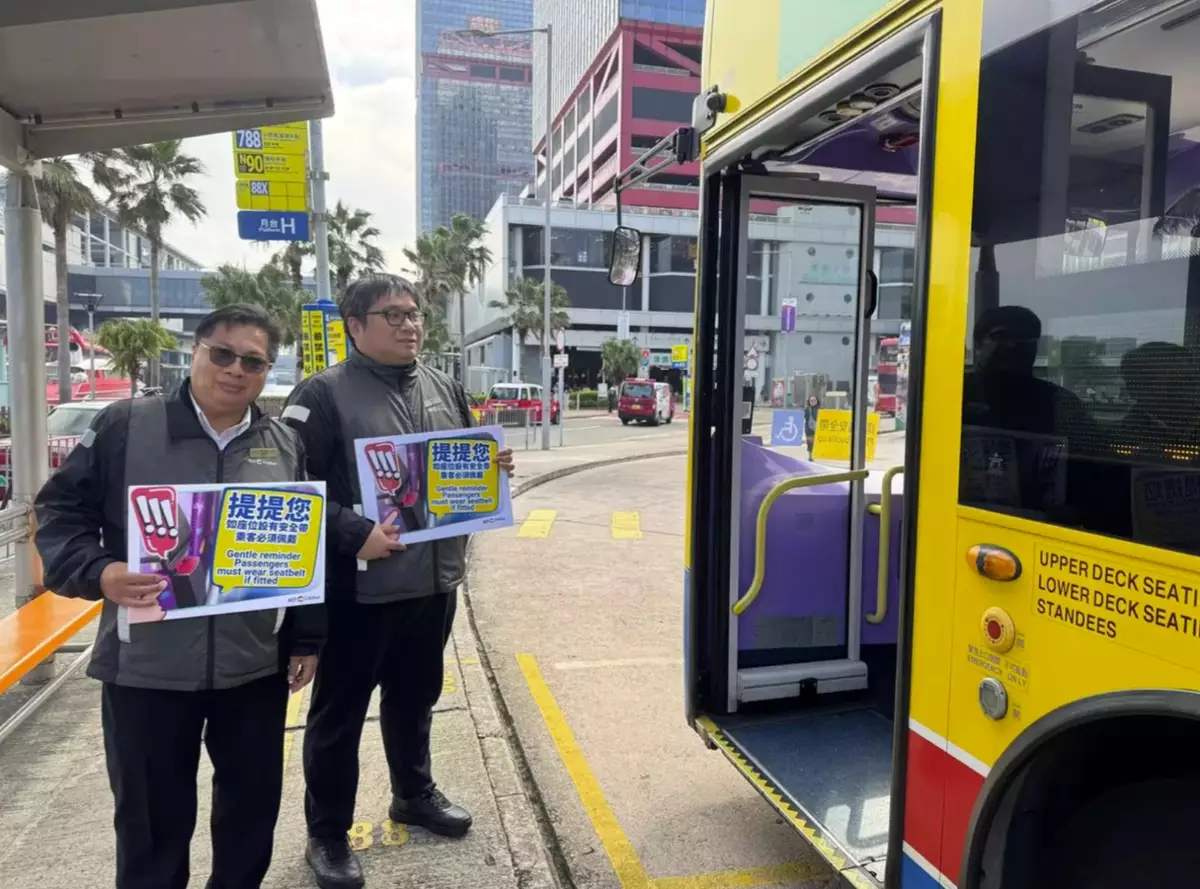 The Department also stated that, to assist passengers in adapting the regulation requirement, it has further strengthened promotion and public education with the operators of both franchised bus and MTR bus, which includes deploying additional staff at bus termini with high passenger flow, such as the Central (Macau Ferry), Ngau Tau Kok and Lok Wah, Tai Loong Street in Kwai Chung, Queen's Hill in Fanling, and Tung Chung, etc., as well as at various public transport interchanges such as Tuen Mun Station, Siu Hong Station (North), and Tin Shui Wai Station, etc., to remind passengers, including children, the elderly, and those in need, to wear seat belts securely and to provide assistance when necessary.