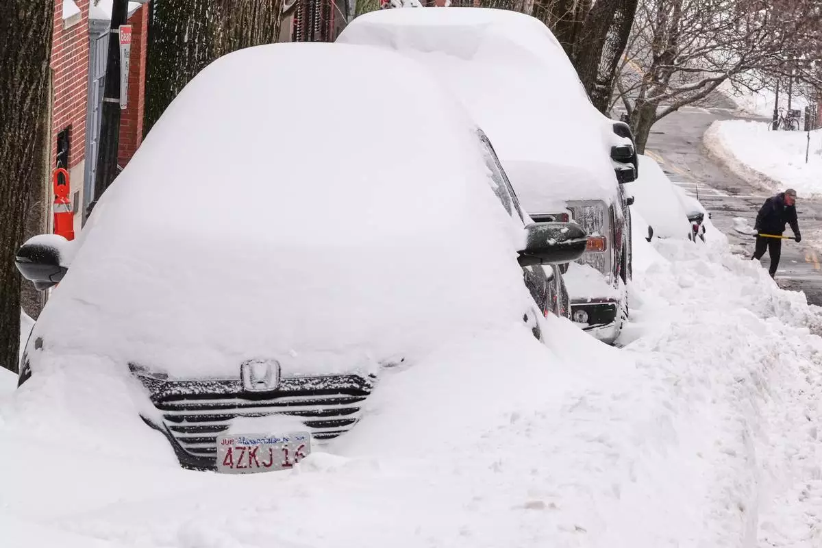 A man digs a car out of the snow on Beacon Hill following a winter storm that dumped more than a foot of snow across the region, Monday, Jan. 26, 2026, in Boston. (AP Photo/Charles Krupa)