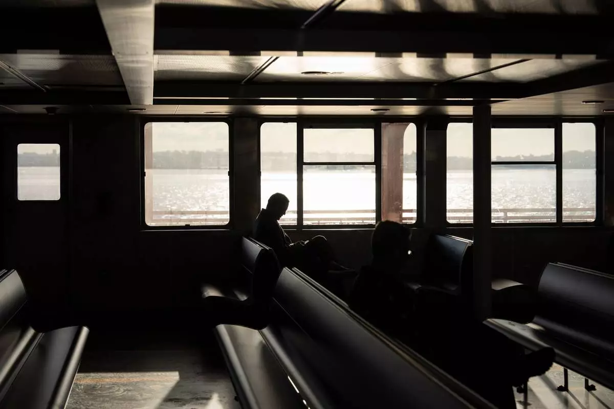 A person takes the Staten Island Ferry, Tuesday, Jan. 27, 2026, in New York. (AP Photo/Yuki Iwamura)