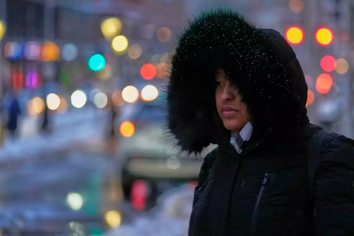 A pedestrian is bundled up against the frigid weather as she waits to cross an icy street, Monday, Jan. 26, 2026, in Boston. (AP Photo/Robert F. Bukaty)