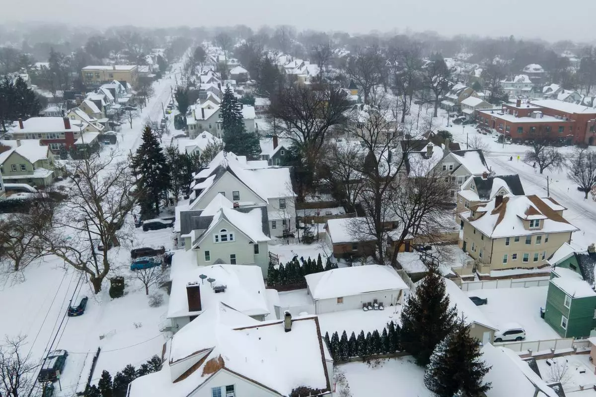 Snow covers houses in Rutherford, N.J., on Sunday, Jan. 25, 2026. (AP Photo/Ted Shaffrey)