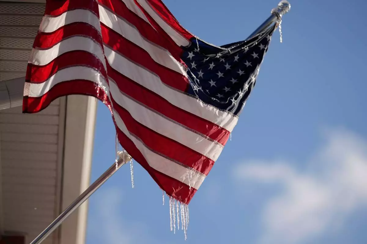 Icicles cling to an American flag in Nashville, Tenn., (AP Photo/George Walker IV)