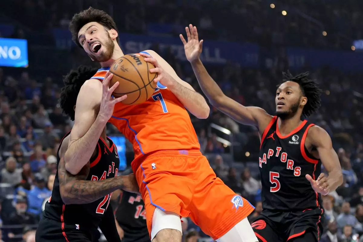 OKLAHOMA CITY (AP) — Immanuel Quickley had 23 points and 11 rebounds to help the Toronto Raptors defeat the NBA-leading Oklahoma City Thunder 103-101 on Sunday night.